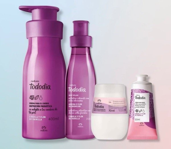 Este kit contiene: crema corporal 400ml, body splash 200ml, roll on y crema de manos 50ml
