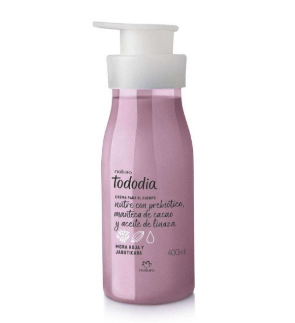 Crema corporal nutritiva Tododía Mora Roja y Jabuticaba. Para todo tipo de piel. Se adapta a las necesidades que cada una tiene. 94% de ingredientes de origen natural.